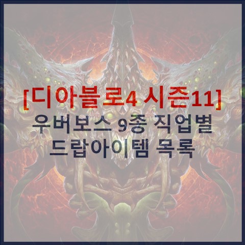 디아블로 시즌11 우버보스 9종 직업별 드랍아이템 목록을 확인해서 득템하세요.